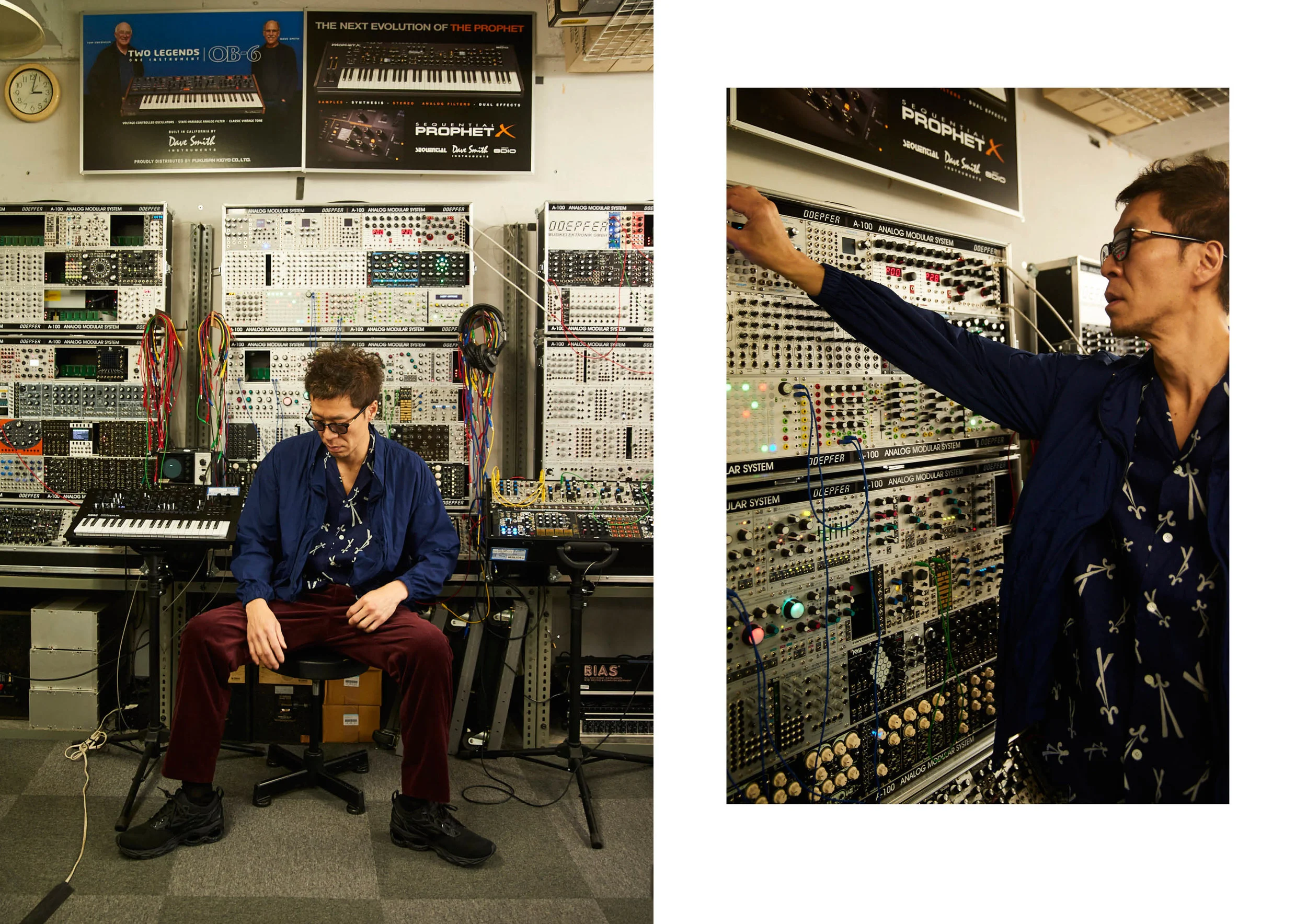 Kyushu native Mr Ino Hidefumi moved to Tokyo in early 2002 with his wife Hiroko. After launching the successful café Tenement, they managed to build up enough revenue to back Mr Hidefumi’s dream of becoming a musician: in 2004 he put out his first single – a hit – and launched a record label, also called Tenement. Since then, Mr Hidefumi has released a series of albums, recorded exclusively with vintage instruments, which, he says give him “a sense of nostalgia”. His latest, Don’t Listen, Feel! Which was released at the end of 2018, is the first on which he’s picked up the mic and tried his hands at vocals. – As the final part of the “Japan Edit” project in collaboration with luxury menswear retailer MR PORTER, we met him in Jinbocho, a district famed for its used book stores, and Harajuku, in the renowned synth shop Five G