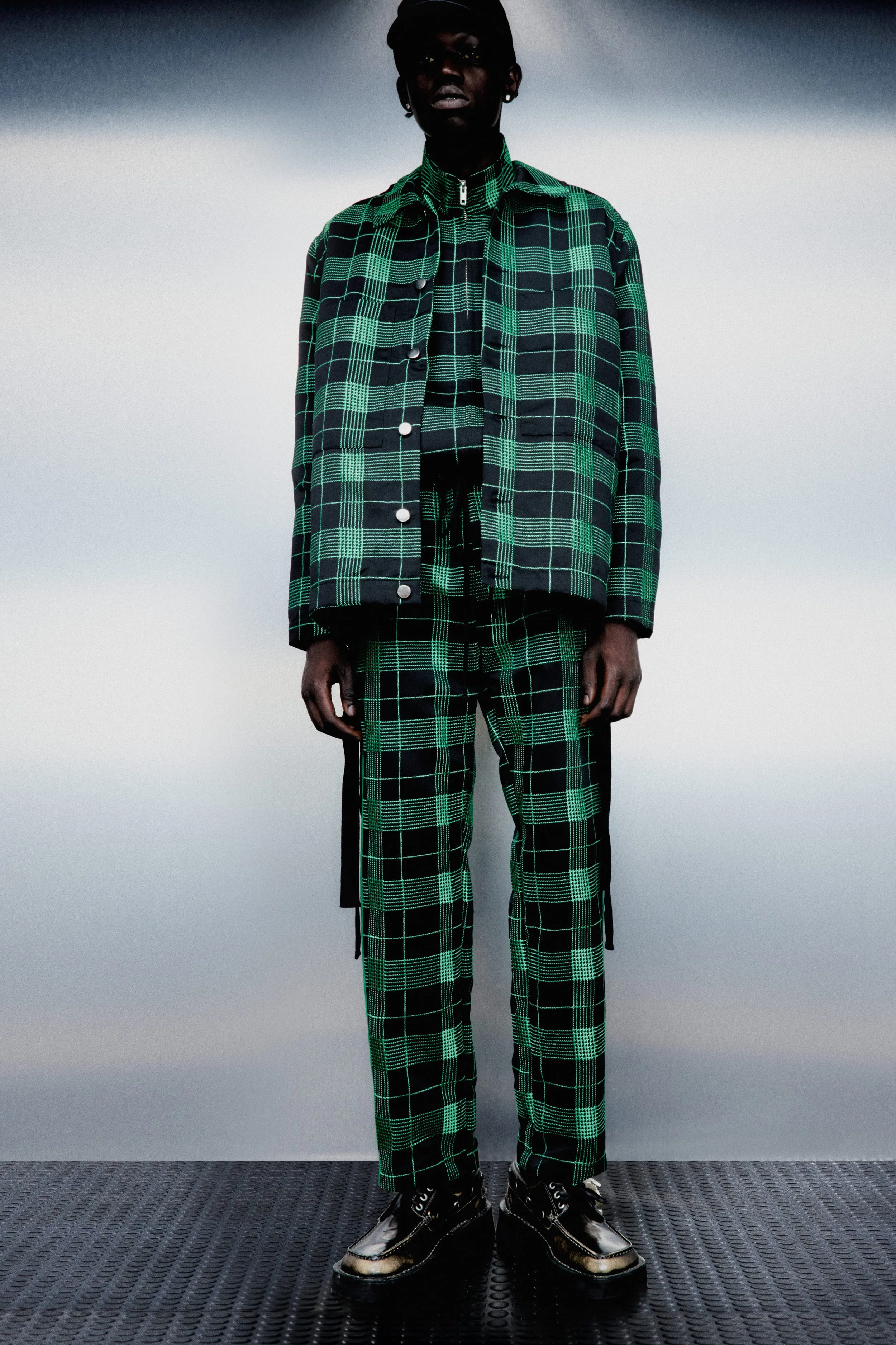 For SS22, the duo infused pleated fabrics for the first time to their menswear range, one of which looks like a grid colourblocked in black and beige, while another resembles waves. There is also an (initially) khaki corduroy with embossed dots that’s been, after a few attempts to hit the right dyeing solution, turned into a vibrant green. This is all sort of new ground for the brand, and yet it’s not — SFTM is meant to evolve as it grows. “Song for the Mute has and will always progress as we grow up and experience new things and meet new people. Through the collections we capture the chapters of our lives and those of the people around us,” Melvin says.